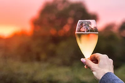 • A chilled bottle of Quob Park English Sparkling Wine on arrival